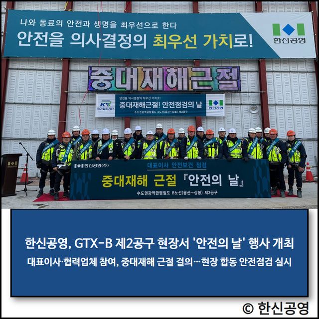 한신공영 관계자는 "위험 요인을 체계적으로 관리하겠다"라며 "임직원과 협력업체 근로자가 함께 참여하는 안전 문화 활동을 통해 중대재해 ZERO 목표를 지속적으로 실현해 나가겠다"라고 전했다.