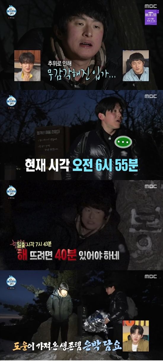 기안84와 도운은 은박담요를 몸에 두르고 해가 뜨기만을 기다렸다. 도운은 "우리 둘 다 거지 같다"고 했다.