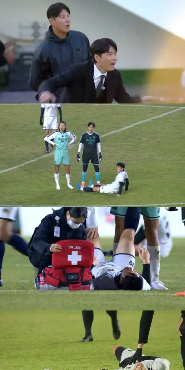 ‘뭉쳐야 찬다4’ 파이널 매치를 앞둔 ‘라이온하츠FC’ 선수들의 분위기는 일촉즉발의 긴장감이 감돈다. 특히 경기 중 에이스 이신기를 포함한 여러 선수들이 쓰러지는 모습이 포착되며 팀 전체에 불안감이 고조된다. 정규 리그부터 플레이오프까지 핵심 역할을 맡았던 이신기의 이탈 가능성은 이동국 감독에게 가장 큰 변수로 작용한다. 이러한 위기 상황은 팀의 우승 향방에 결정적인 영향을 미칠 전망이다.