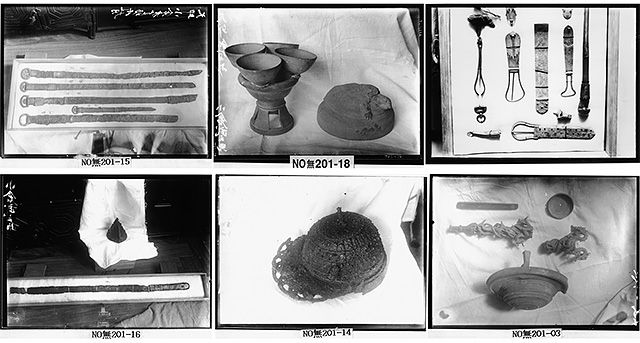 사진에서 확인할 수 있는 바와 같이 나무 상자 안에 천을 깔아놓고 그 위에 유물들을 올려놓았다. 그 후 덮개를 바로 덮거나 천을 한 번 더 유물 위에 올리고 덮개를 덮었을 것이다. 후술하는 바와 같이 해방 이후 오구라 다케노스케가 대구 저택에 숨겨놓았다가 나중에 발견된 유물은 오동나무 상자에 담겨있었다. 고고 유물들은 이와 같이 오동나무 상자에 담아 저택에 보관하고 있었다.