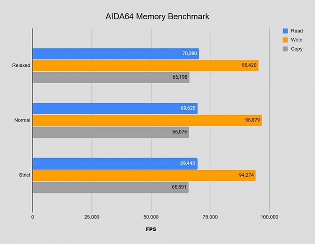 테스트 자료에서도 언급한 경향이 확인된다. 일부 메모리 벤치마크에서는 Relaxed 모드가 더 높은 수치를 기록했지만, 사이버펑크 2077 등 실사용 게임 테스트에서는 Normal 모드가 더 안정적인 프레임 유지와 일관된 성능을 보였다는 것이다.