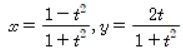 이 된다. t라는 하나의 변수로 바꿨다. 이런 걸 '매개화'라고 한다. x, y 변수 두 개였으나, 하나의 변수를 t 하나로 표현할 수 있게 되었다. 변환을 매개한 식이 유리수 식, 즉 유리식이다.