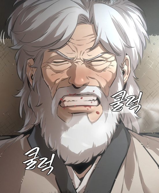 그는 피를 토하며 간신히 숨을 내쉬면서도