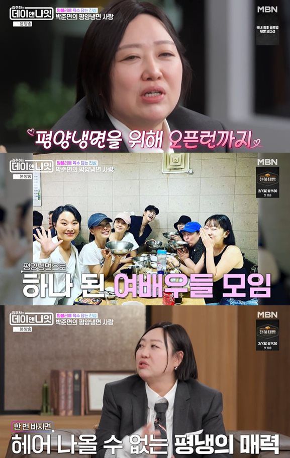 이날 문세윤이 박준면을 향해 "평양냉면 앰버서더라는 말이 있더라"고 하자 박준면은 "평양냉면을 너무 좋아해서 전도사 수준"이라고 답했다.