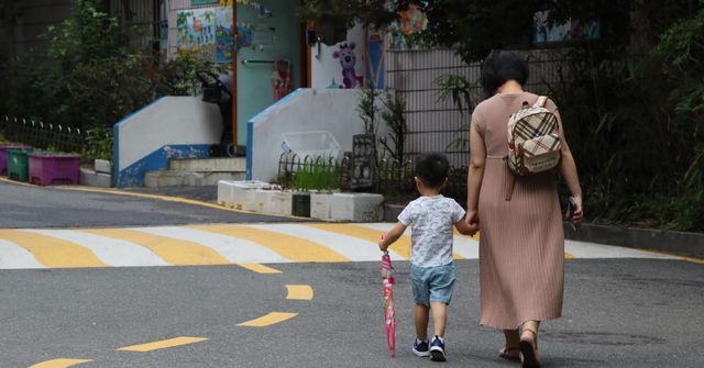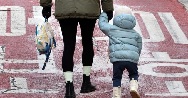 서울시내 한 어린이집에서 한 어린이가 등원하고 있다. / 뉴스1