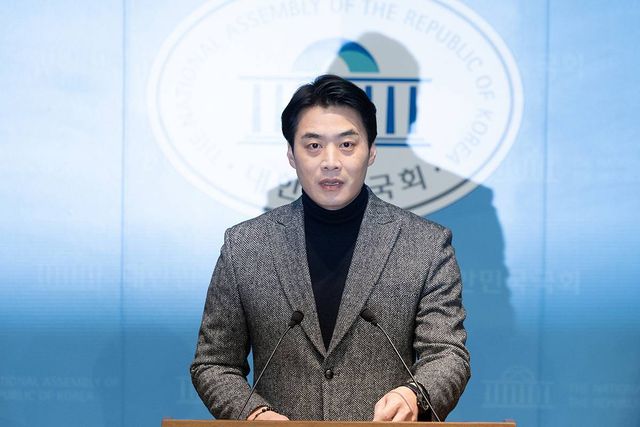한준호 더불어민주당 의원이 1일 서울 여의도 국회 소통관에서 조국혁신당과의 합당 제안을 멈춰달라는 기자회견을 하고 있다 / 뉴스1