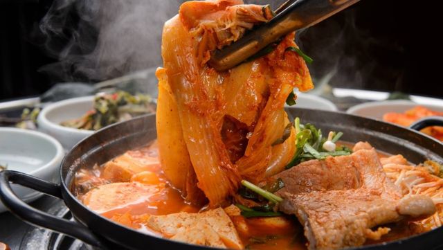김치는 잘 익은 신김치를 준비한다. 김치 꼭지만 자르고 포기째로 길게 넣어야 나중에 쫙 찢어 먹는 재미를 느낄 수 있다. 만약 김치가 너무 시다면 설탕을 한두 숟가락 넣어보자. 설탕은 신맛을 줄여주고 김치와 고기가 서로 잘 어우러지게 돕는다. 여기에 다진 마늘을 듬뿍 넣으면 한국인이 좋아하는 깊은 맛이 완성된다.