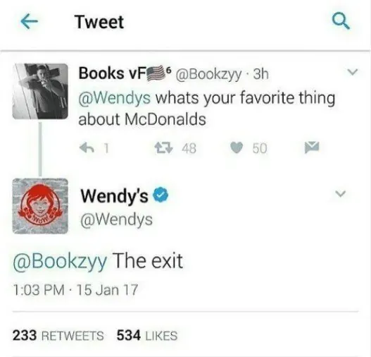 디스하는 똘끼를 보여준 웬디스는
