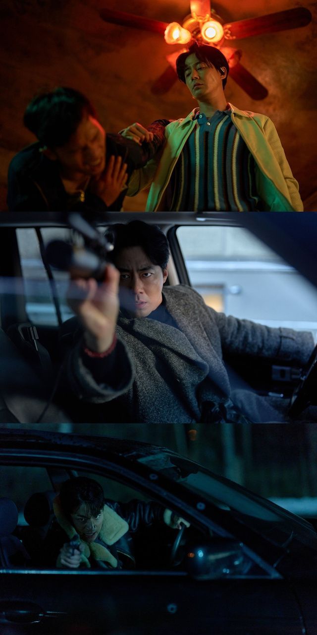 공개된 스틸은 영화의 다이내믹한 현장감을 고스란히 전한다. 조 과장(조인성)이 상대를 단숨에 제압하는 맨몸 액션은 물론, 극한의 상황 속에서도 냉철함을 유지하며 펼치는 총기 액션이 시선을 사로잡는다. 또한 박건(박정민)이 차량을 몰며 총격을 가하는 장면은 스크린에서 펼쳐질 속도감 넘치는 카 체이싱에 대한 기대감을 고조시킨다. 마지막으로 황치성(박해준)이 누군가에게 총을 겨누는 모습은 냉혹하고 거친 캐릭터성을 보여주며, 이들의 격돌이 과연 어떤 전개로 이어질지 호기심을 자극한다.
