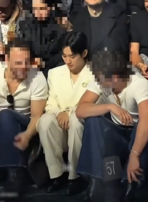 두 남성은 다리를 넓게 벌리고 서로 대화를 나누는 동안, 정해인은 가운데에 낀 채 불편한 자세로 앉아 다소 굳은 표정을 보였다.