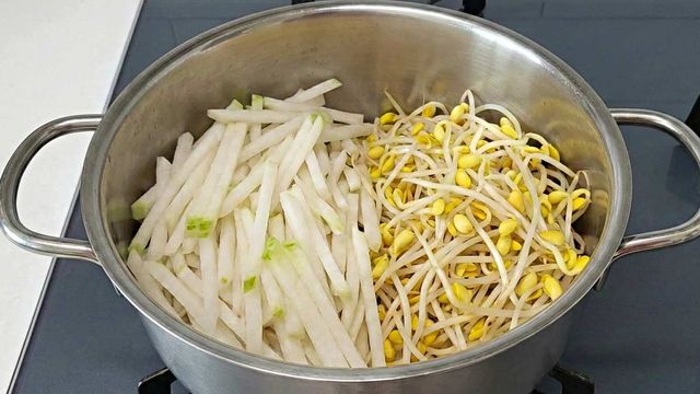 불 조절도 공식처럼 지키는 편이 안정적이다. 처음 3분은 중약불로 냄비를 달궈 수분이 나오기 시작하게 하고, 이후 7분은 약불로 줄여 채소가 자기 수분으로 천천히 익게 둔다. 마지막 3분은 불을 끄고 뚜껑을 연 채가 아니라 닫은 상태로 뜸을 들인다. 이 과정에서 콩나물 특유의 풋내가 사라지고 무는 투명하게 익는다.
