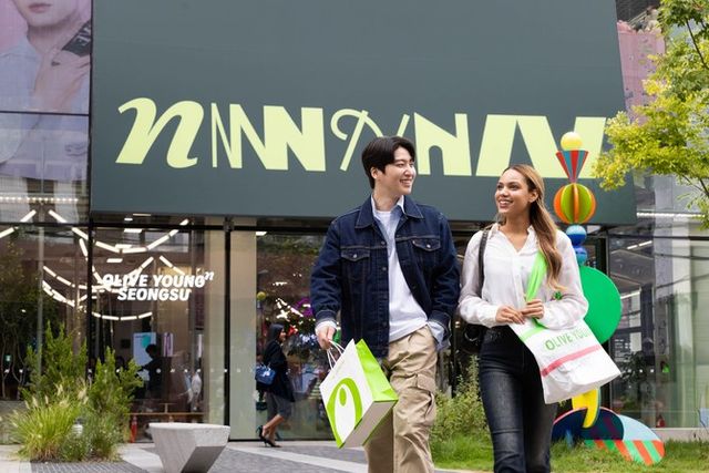 외국인 관광객이 '올리브영N 성수' 매장에서 쇼핑을 마치고 나오는 모습. ⓒ CJ올리브영