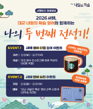 또 3월31일까지 '대교 내일의 학습' 영어 과목을 신청한 선착순 50명에게 파리바게트 상품권을 제공하는 '새해 영어 실천 이벤트'도 함께 진행된다.