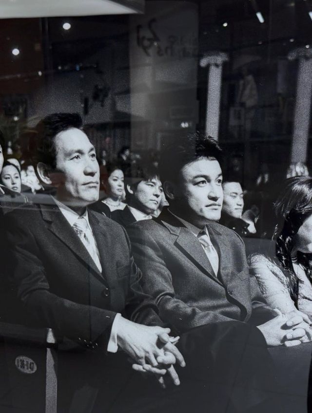 공개된 사진 속에는 과거 한 행사장으로 보이는 곳에서 나란히 앉아 어딘가를 응시하고 있는 박중훈과 안성기의 모습이 담겨 있다. 두 사람은 단정한 수트 차림으로 진지한 표정을 짓고 있으며, 흑백의 질감이 더해져 영화의 한 장면 같은 분위기를 자아낸다.