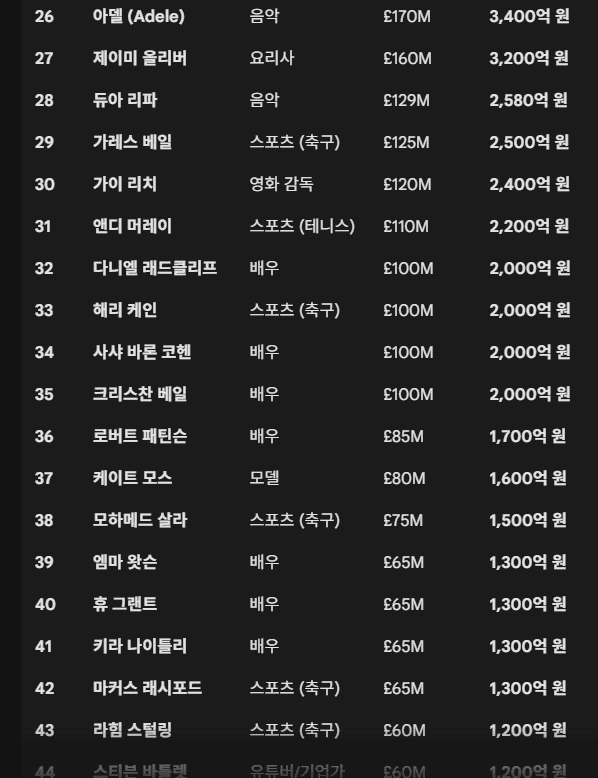 의외로 세계적인 문화강국인 일본의 스타들과 자산수준이 거의 비등비등한 수준이라고함 (마에자와 유사쿠는 기업인이니 논외)