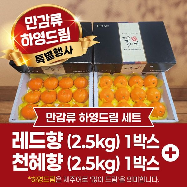 또한 9일부터는 만감류와 제주 특산품을 결합한 꾸러미 상품도 순차 출시한다. 1번 꾸러미는 한라봉 2.5㎏과 제주산 흑돼지 세트(족발·돈가스·소시지), 2번 꾸러미는 한라봉 2.5㎏과 오메기떡 선물세트(20개입)로 마련했다.