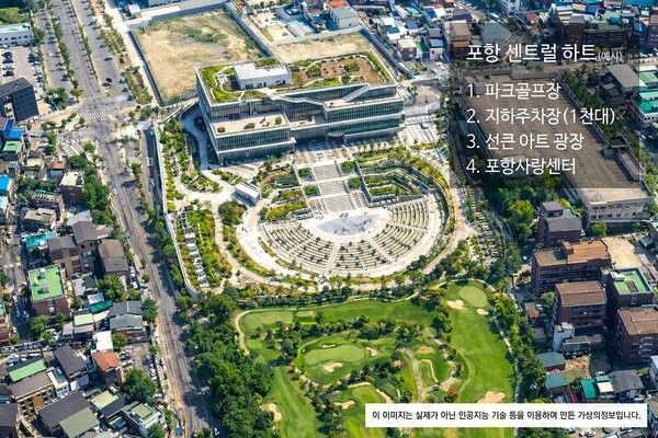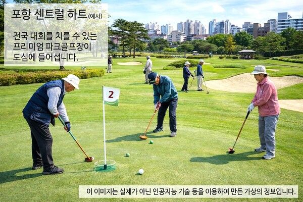 ⚫ 포항사랑센터 : 파크골프 클럽하우스를 다양한 단체와 개인들이 함께 이용하는 '포항사랑센터'로 확대해 건립한다. 원도심에 유동인구를 대거 늘려 원도심 활성화의 전진기지로 만들겠다는 복안이다.