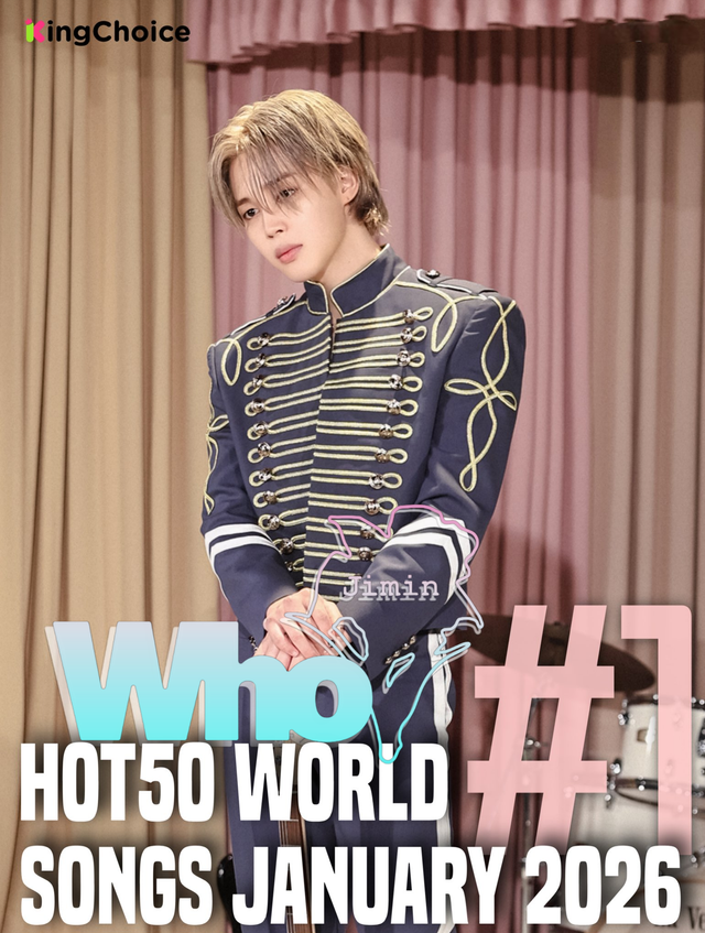방탄소년단(BTS) 지민의 솔로곡 ‘Who’는 글로벌 K팝 팬 투표 사이트 킹초이스(King Choice)가 1월 1일부터 1월 31일까지 진행한 ‘2026년 1월 월드송 핫50’에서 1위를 차지했다. 이로써 ‘Who’는 해당 차트에서 통산 15번째 정상에 오르며 식지 않는 인기를 이어갔다.