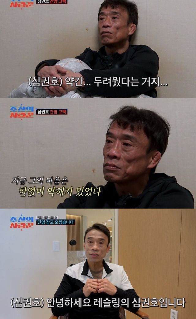 심권호의 복부를 초음파로 살펴보던 담당의는 “간이 많이 딱딱해 보인다”며 ‘간경화’ 소견을 밝혔다. 다른 사항을 확인하던 중, “CT를 찍어봐야 한다”고 담당의가 말했지만 심권호는 제안을 거절하고 다급하게 병원을 떠났다. 이후 연애 워크숍에서 심권호를 아들처럼 아껴준 윤경 코치와 심현섭, 임재욱이 심권호의 집으로 찾아와 응원을 전했다. 그러자 심권호는 “간암…그걸 빨리 찾았다”며 검사 결과지를 보여줬다. 이 소식을 들은 모두가 충격에 빠진 가운데, 제작진은 초기 간암에 관한 설명을 덧붙이다가 상황의 심각성에 말문을 잃었다. 심권호는 “두려웠다. 알려지는 것도 싫고…혼자만 알고 싶었다. 남들에게 보이기 싫었다”며 치료를 시작하면 날아들 시선이 부담돼 도망치고 말았다고 진심을 전했다.