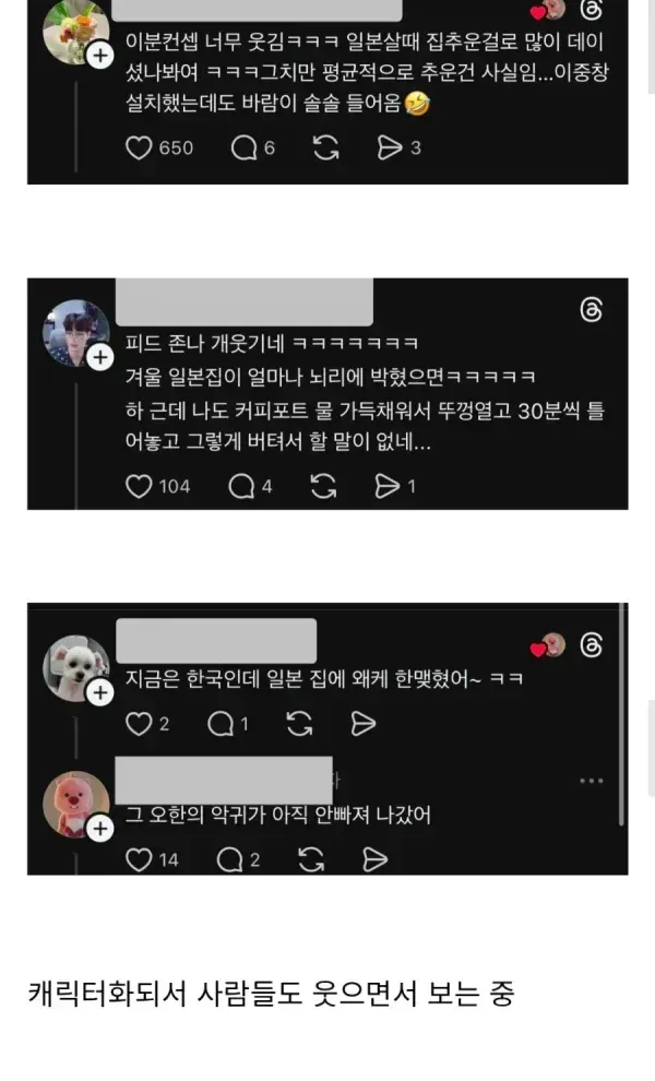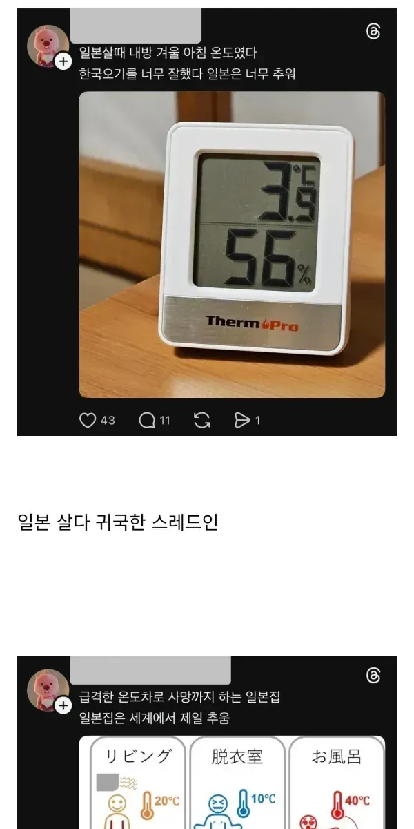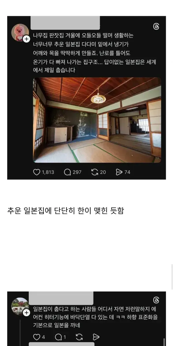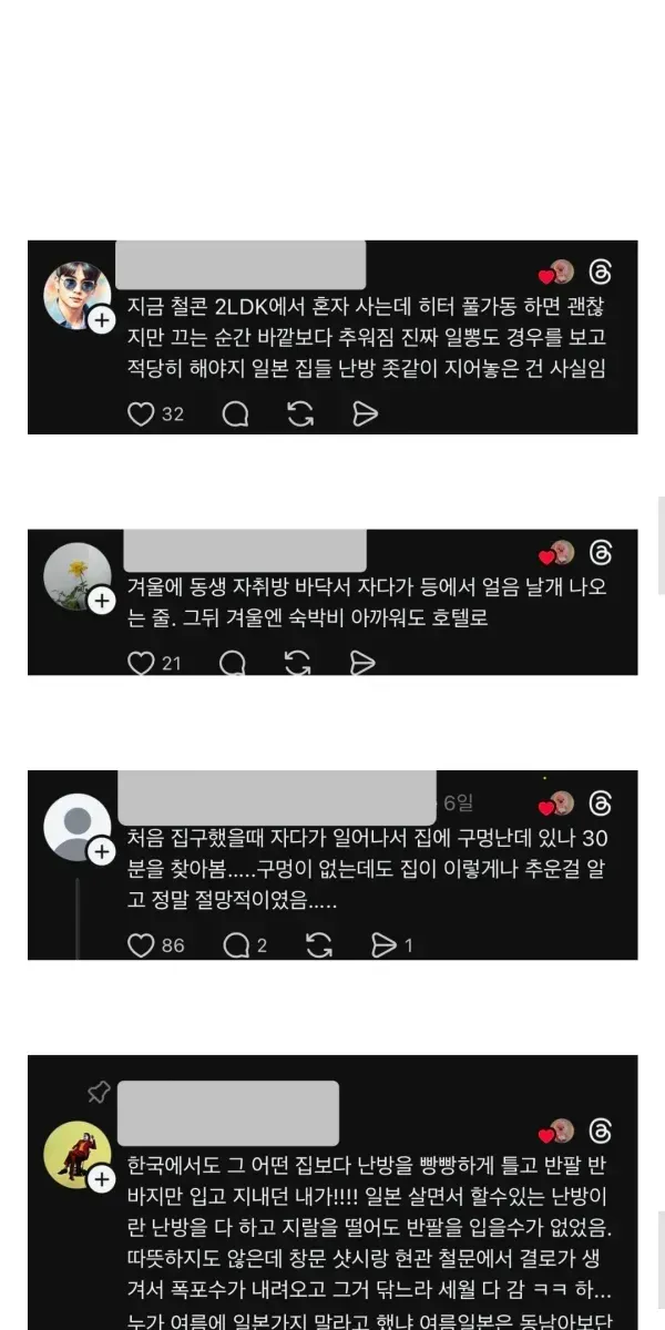 지진때문에 바닥난방 거의 못함 << 윗공기만 뜨거움