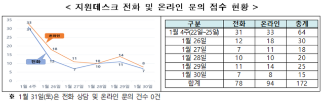 지원데스크 전화 및 온라인 문의 접수 현황. ⓒ 과학기술정보통신부