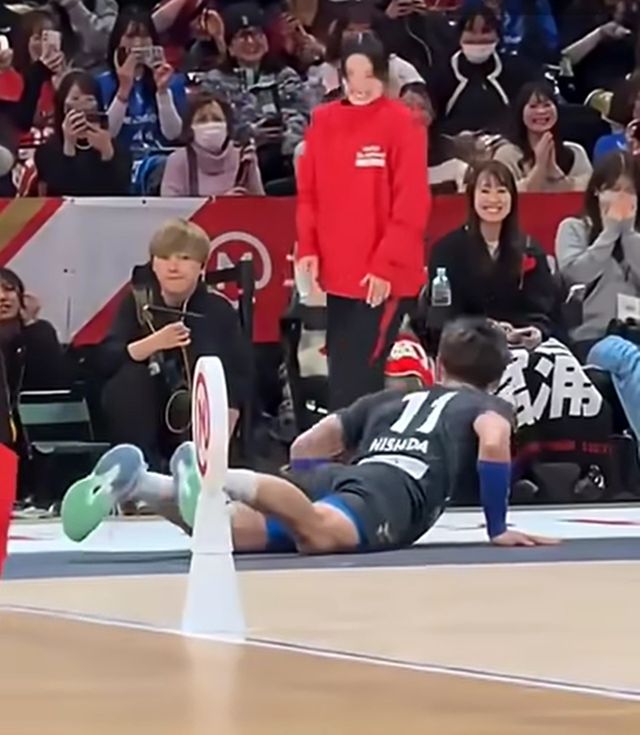 영상에 따르면, 경기 하프타임 연습 도중, 오사카 블루테온 소속 니시다 유지가 친 공이 여성 스태프에게로 날아갔다.