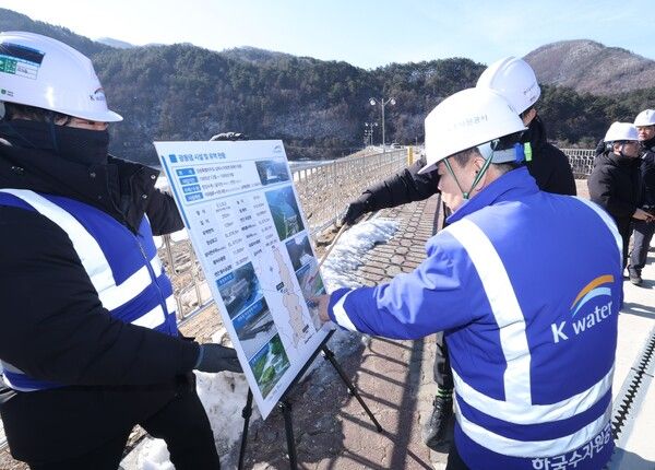 한국수자원공사는 윤석대 사장이 지난달 30일 강원 남부권(태백·삼척·정선)의 주 식수원인 삼척시 광동댐을 방문해 저수 상황을 확인하고 물 공급체계 전반을 점검했다고 3일 밝혔다.