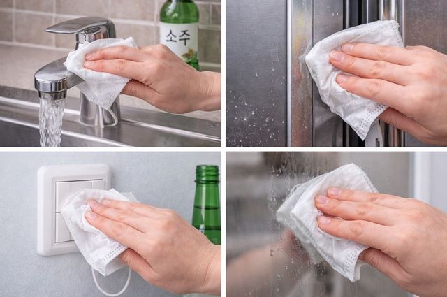 그럼에도 문손잡이, 냉장고 겉면, 스위치 주변처럼 손이 자주 닿아 지문이 남기 쉬운 곳을 가볍게 닦아 주기에는 충분히 쓸 만한 방법이 될 수 있다.
