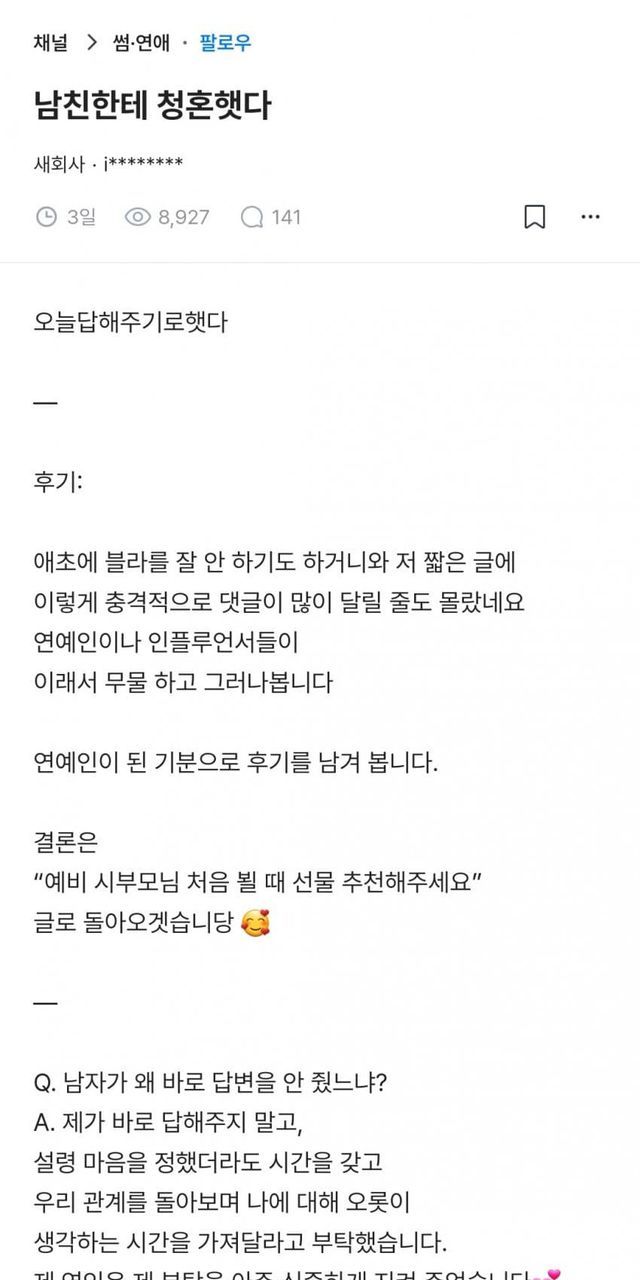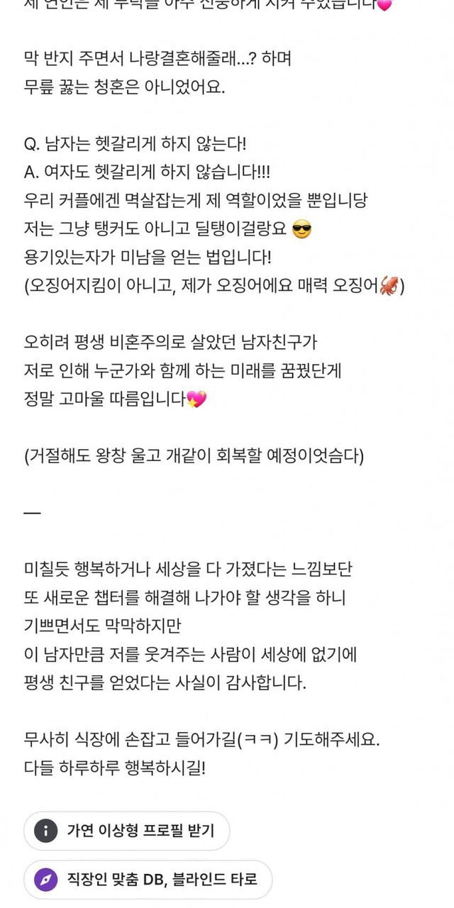 돈한푼안쓴 달랑 문자로 결혼하자 청혼한건가....ㅋㅋㅋㅋ