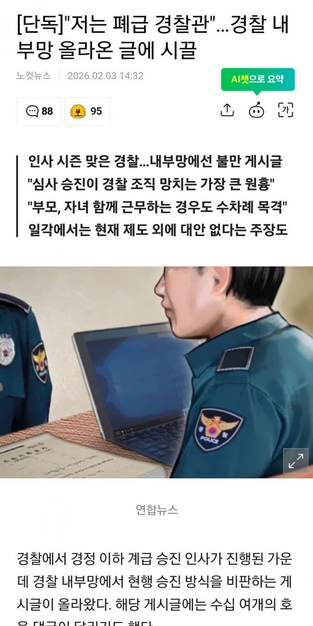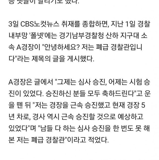 경찰 내부망에 올라온 글 "저는 폐급 경찰관 입니다"