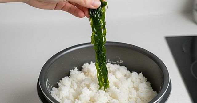 조리법은 생각보다 간단하다. 쌀을 평소처럼 씻어 불린 뒤, 밥솥에 넣기 전에 미역을 먼저 살짝 볶아주는 것이 좋다. 팬에 참기름을 두르고 미역을 약불에서 볶으면 향이 살아나고 비린 맛이 한 번 더 날아간다. 이때 다진 마늘을 아주 소량만 넣어도 감칠맛이 올라간다. 볶은 미역을 쌀 위에 얹고 평소보다 물을 약간 적게 잡아 밥을 짓는다.
