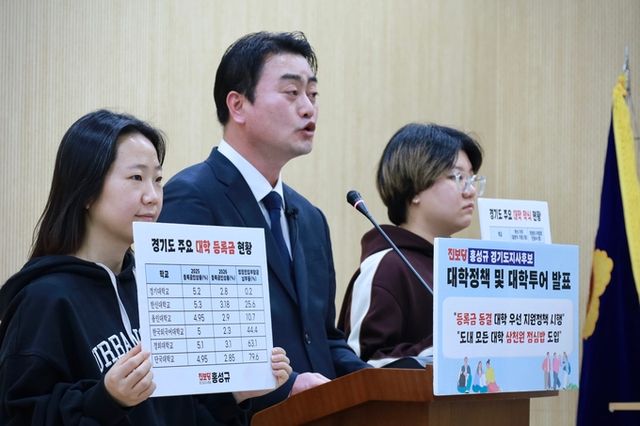 [와이뉴스] 홍성규 진보당 경기도지사 후보는 3일, 경기도의회 브리핑룸에서 기자회견을 갖고 "등록금 인상 전에 재단전입금 확충부터! 1천원 아침밥은 3천원 점심밥으로 이어져야 한다"고 밝혔다.