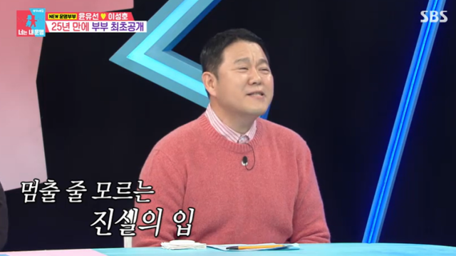 그러나 주선자가 적극적으로 만남을 설득해 억지로 만나게 됐다고. 이성호는 “사실 아내가 그렇게 제가 찾는 외모는 아니었다. 키가 좀 작았고, 철없을 때라 서구적인 외모를 선호했다”고 솔직히 털어놨고, 이를 들은 패널들은 “알았으니까 그만 하세요”, “알았어요!”, “눈치 없어”라고 호통쳐 웃음을 자아냈다.