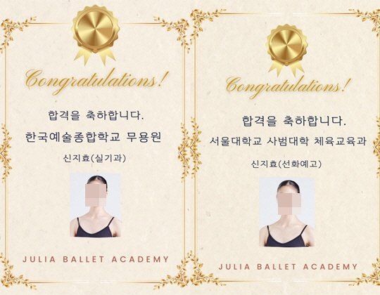 최근 한 발레아카데미는 자사 SNS에 “2026학년도 서울대학교 신입학 합격. 자랑스러운 졸업생 신지효(선화예고3). 서울대 사범대학 체육교육과 합격”이라는 글과 함께 사진을 올렸다.