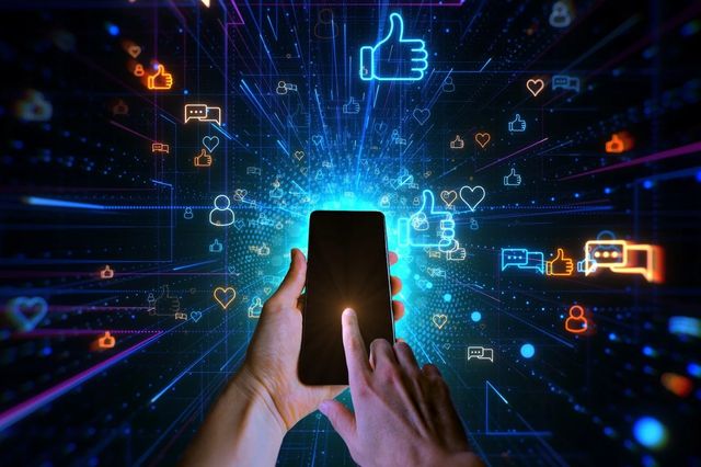 스마트폰 화면 너머로 확산되는 소셜미디어 반응과 디지털 소통의 흐름을 형상화한 이미지다. / amgun-shutterstock.com