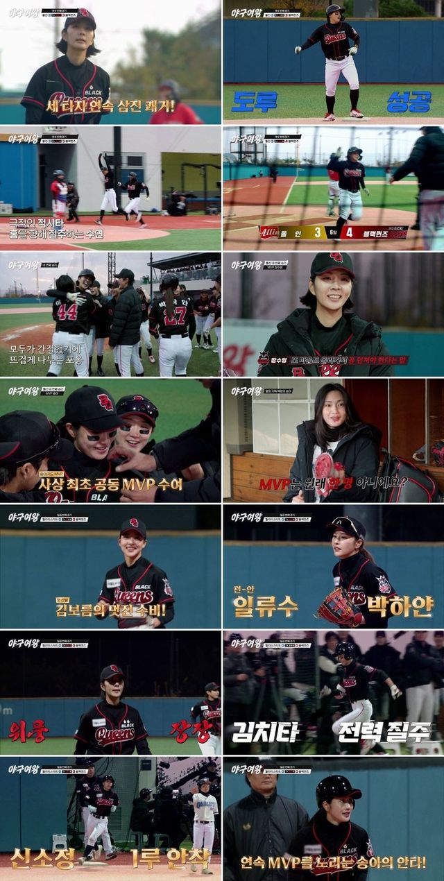 3일 방송된 채널A ‘야구여왕’ 11회에서는 ‘레전드 선출’ 김민지-김보름-김성연-김온아-박보람-박하얀-송아-신소정-신수지-아야카-이수연-장수영-정유인-주수진-최현미가 뭉친 국내 50번째 여자 야구단 블랙퀸즈가 영남권 여자 야구 리그에서 3년 연속 우승·준우승을 차지한 올인과 여섯 번째 정식 경기를 치르는 현장이 공개됐다.