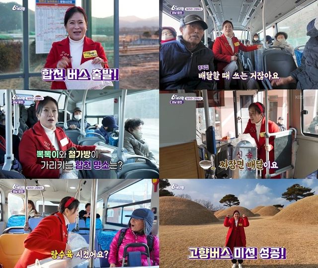 3일 방송된 KBS1 ‘6시 내고향’에서는 경상남도 합천군의 버스에 올라 이웃들의 인생사를 만나보는 ‘국민 안내양’ 김정연의 모습이 담겼다. 이 날 명소 찾기의 첫번째 힌트로는 일명 ‘뽁뽁이’라 불리는 에어캡이 제시돼 김정연을 당황하게 했다. 김정연을 열심히 버스에 올라 군민들에게 수소문을 이어갔지만, 좀처럼 답을 찾기 어려운 상황이 이어졌다.