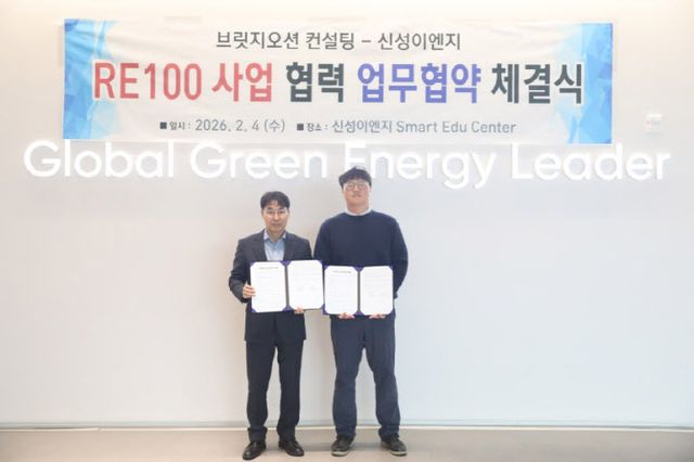 신성이엔지는 4일 브릿지오션컨설팅과 신재생에너지(태양광) 구축사업 공동 추진을 위한 업무협약(MOU)을 체결했다. 이번 협약은 전력 사용량이 구조적으로 증가하는 데이터센터를 대상으로 재생에너지 기반의 안정적인 전력 공급 체계를 구축하기 위한 것이다.