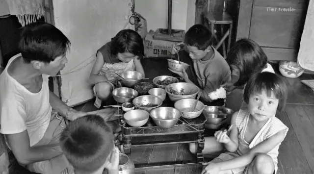 한국전쟁 이후로 10~20년이 지났지만 많이 빈곤해 보이는 밥상이다