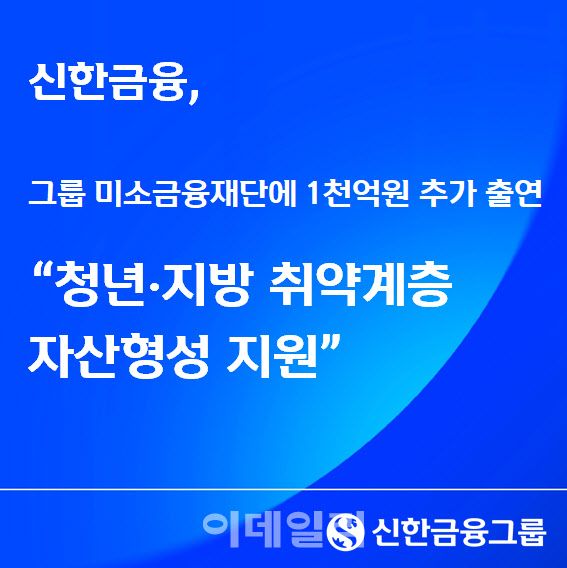진옥동 신한금융 회장은 “이번 출연은 신한미소금융재단이 청년과 지방 취약계층을 위한 서민금융의 실질적인 실행 거점으로 도약하는 계기”라며 “신한금융은 성실한 금융 이용이 자립과 미래 준비로 이어질 수 있도록 포용금융 지원을 ‘책임경영’으로 확장해 지속적으로 고도화해 나가겠다”고 말했다.
