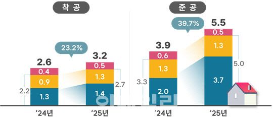 분석 결과에 따르면 지난해 서울의 주택 준공 실적은 총 5만5000호로 전년(3만9000호) 대비 39.7% 증가했다. 특히 아파트 준공 물량은 5만 호를 기록, 전년 대비 51.5%나 급증하며 전체 공급 확대를 견인했다.