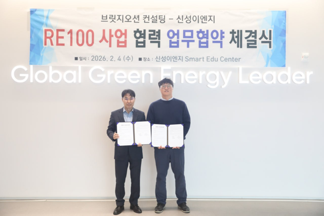 신성이엔지는 4일 브릿지오션컨설팅과 신재생에너지(태양광) 구축사업 공동 추진을 위한 업무협약(MOU)을 체결했다. 이번 협약은 전력 사용량이 구조적으로 증가하는 데이터센터를 대상으로 재생에너지 기반의 안정적인 전력 공급 체계를 구축하기 위한 것이다.