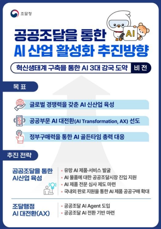 이번 방안은 공공조달을 통한 AI 산업 육성과 조달행정 AI 대전환을 동시에 추진하는 것을 목표로, 공공조달 전 과정을 AI 중심으로 재설계하는 데 중점을 두었다.