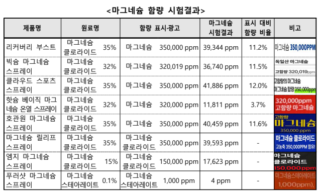 마그네슘 함량 표시와 실제 함량 간 차이도 확인됐다.