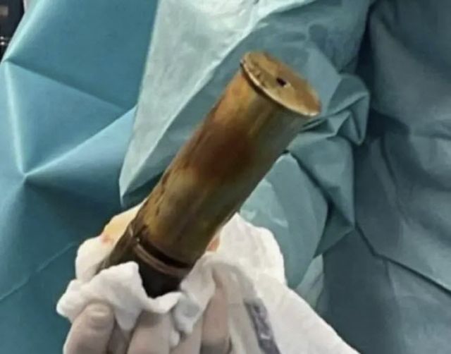직장 내부에서는 길이 약 20㎝, 직경 약 3.7㎝ 크기의 대형 물체가 발견됐다. 이 물체는 제1918년 말 1차 세계대전 당시 독일군이 사용한 황동 포탄인 것으로 밝혀졌다.