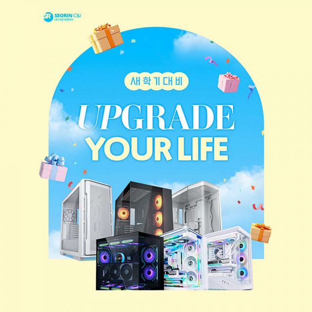 컴퓨터 주요 부품 수입·유통 기업 서린씨앤아이가 새 학기 시즌에 맞춰 UPGRADE YOUR LIFE 프로모션을 진행한다. 서린씨앤아이 유통 제품으로 구성된 조립PC를 구매하면 사은품 2종을 받을 수 있다.