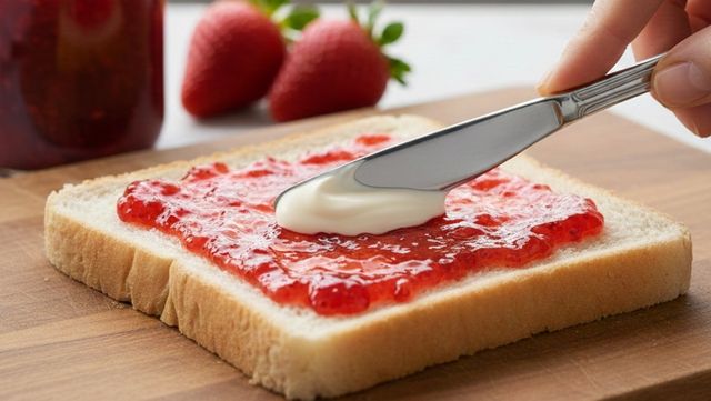 기사를 바탕으로 AI가 생성한 자료사진. 식빵에 딸기잼과 마요네즈 조합을 발라 먹을 수 있다.