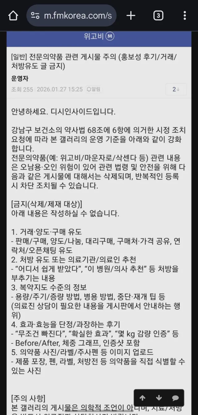 감량 후기도 못 씀, 성지 구매 공유도 안 됨.