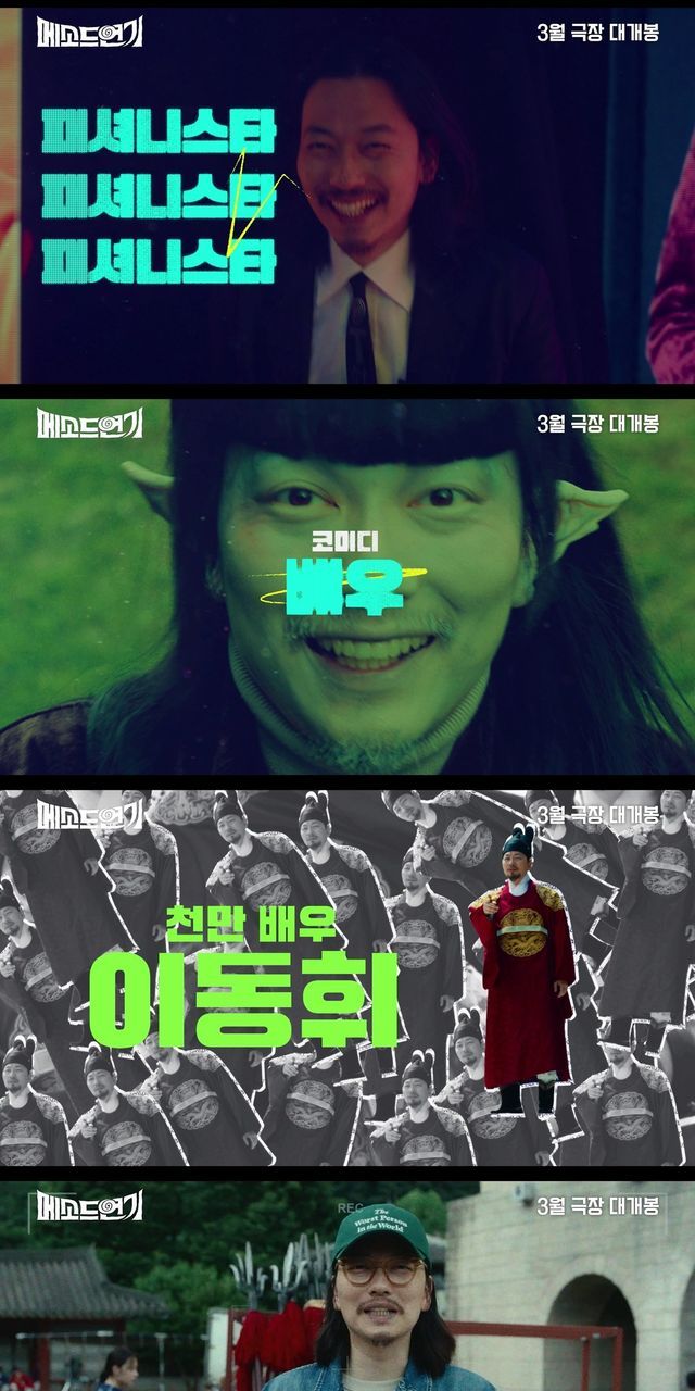 함께 공개된 예고편은 패셔니스타이자 코미디 배우, 천만 배우 등 다양한 수식어를 지닌 배우 ‘이동휘’가 박수갈채를 받으며 등장해 관심을 집중시킨다. 지난 필모그래피가 주마등처럼 스치는 가운데, 사극 촬영으로 정극에 도전하게 된 ‘이동휘’는 새로운 각오를 다지지만 고성이 오가는 일촉즉발의 촬영 현장과 감독의 싸늘한 표정, 주변의 회의적인 반응은 그의 앞날이 결코 순탄치 않을 것임을 암시한다.