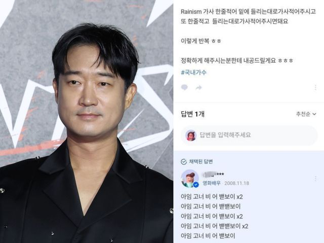 이 가운데 조우진은 지난 2008년 한 누리꾼이 가수 비의 ‘레이니즘’ 영어 발음 가사를 한국어로 적어달라는 질문에 직접 답변을 달아 눈길을 끌었다.